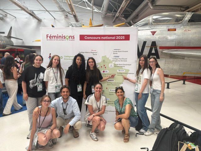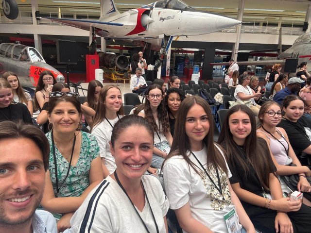 Après avoir participé au concours « Féminisons les métiers de l’aéronautique et du spatial » , nos filles de 3e, Maelle, Lola, Louna, Stella, Soukayna, Louna et Manon, ont eu la chance de participer à la 55e édition du Salon du Bourget.